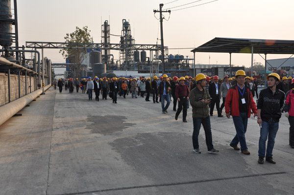 2013年第33屆水處理年會(huì),在山東棗莊開元鳳鳴山莊召開,會(huì)議第一天,全國300多名水處理專家和同行,參觀山東泰和科技股份有限公司,并在泰和的倉儲(chǔ)立體庫門前完成了本次年會(huì)的大合照。所有代表參觀了泰和工廠,泰和經(jīng)過這么多年的飛速發(fā)展,現(xiàn)在過萬噸成套設(shè)備有年產(chǎn)2萬噸60%HEDP及聯(lián)產(chǎn)1.5萬噸乙酰氯裝置1套,年產(chǎn)2.5萬噸ATMP生產(chǎn)裝置1套,年產(chǎn)1萬噸1227裝置2套。